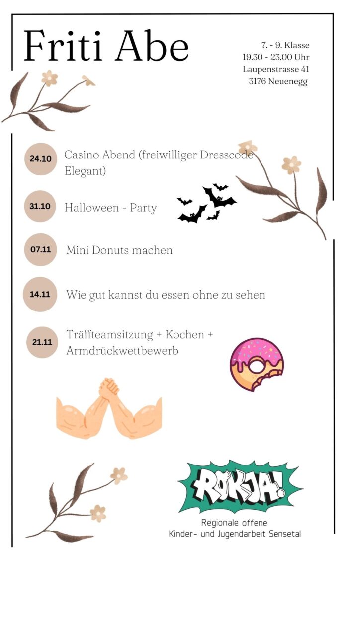 Klick auf den Flyer für das Programm. Mehr Infos zum Jugendtreff Neuenegg findest du hier.