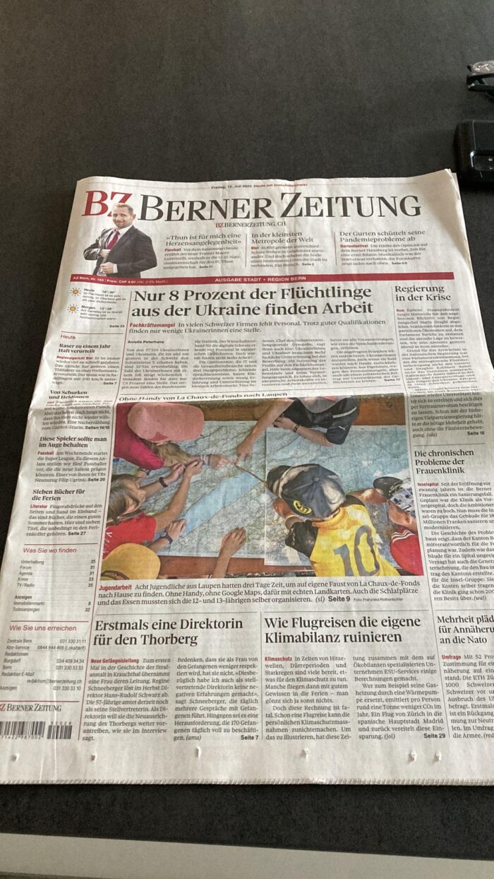 Auch in diesem Jahr absolvierten wir mit einer Gruppe Jugendlichen das Abendteuer Projekt Heimweg der ROKJA Sensetal. Diese Jahr wurden wir während dem Heimweg von einer Reporterin der Bernerzeitung BZ besucht und anschliessend wurde der Artikel auf der Titelseite der Bernerzeitung BZ und als Artikel im Bund publiziert. Der Artikel der Bernerzeitung finden Sie als PDF hier: Artikel BZ