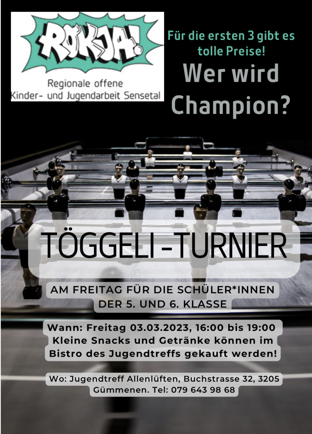 ROKJA Töggeliturner Allenlüften Veröffentlicht am 28. Februar 2023 von Matthias Maier Matthias Maier Alle Beiträge von Matthias Maier ansehen →